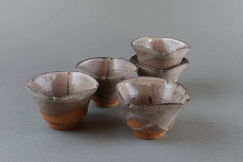Among works marked as “SOLD,” some may be made again, or multiple versions may be in stock. Please inquire for availability. Otherwise, please forgive us if a work is already sold and unavailable. Works with wooden boxes already made for them include the price of the box in the product price. As for works without wooden boxes, we can, at the buyer’s request, have a box made for a separate fee. About ten days are necessary for a box to be made and then inscribed by the artist. For example : a paulownia wood box with a two-cleat lid with cords would be 2,500 yen for a sake cup, or 3,500yen for a tea bowl.