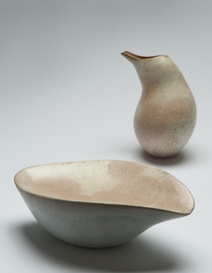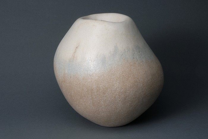 今展の寺井陽子の作品も過去にほめにほめた覚えがある。作為によって作為を超えた間一髪の美しいラインを我ものとしていると。そのフォルムは、パステル調の清浄な釉色とあいまって、自然と拮抗して、ほとんど成仏しているぞと思ったほどの印象だった。今回の個展は三年ぶりだが、彼女と彼女の作品は、時間という負荷をくぐり抜けて無事であろうか…。なにか作る人に対し、おどかすようなことを述べてきているようで、筆者は畏れるが、しかし当方とていろんな意味でびびる気持ちがあるのである。