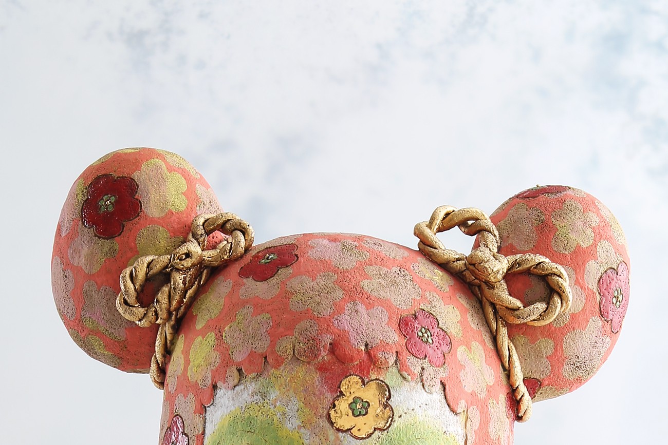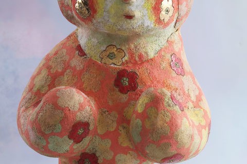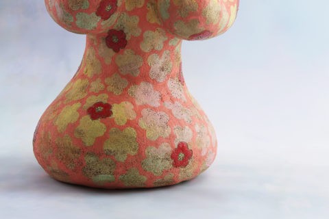 写真の津守愛香のフィギュアリンは、一つの立像として成立していると思う。撮影用として来たものを何日か見つめていたのだが、なにかを内に湛(たた)えながら、結構な圧でもってこちらに迫ってくるものがある。それがどんなものか説明に窮するのだが、彼女はこれを〝花柄のこ〟と題している。童女だろうが、筆者には人でもなし神仏でもなしといったダイモーン的な、なにか人外の存在のように思われてくる。そのようなものとして真に迫ってくるのである。五弁の花を全身にまとって、この世のすべての花卉の生成変化を差配する花の精のようだ。目には目力がある。その目でこちらを見すえる表情には、匙ひと掬(すく)いほどの毒気を感じさせる。しかしそれは毒単味ではなく、薬にも転じるような善悪あわせ持つ毒のように思われる。言えば言えるようである。それはこの作が言わしめるのだろう。この作品、毒にも薬にもならぬような、言っては悪いが薄っぺらな現代美術的なるものとは一線を画して秀逸だと言いたい。