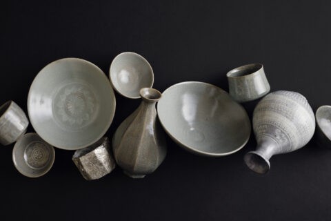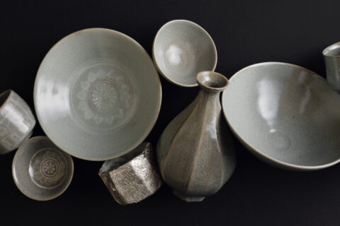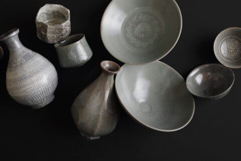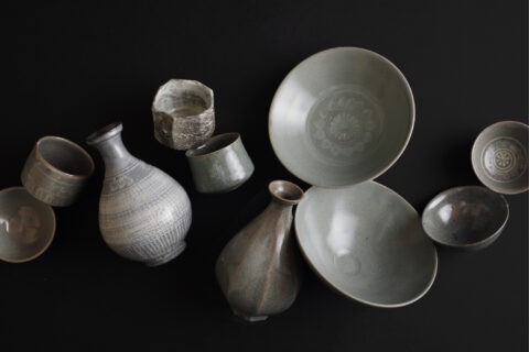 今展の鈴木大弓は、弊館では初お目見えとなる。大きな弓と書いてヒロユミと読む。二年ほど前、たまたま信楽のあるギャラリーで手にしたのが彼の青磁の兜小鉢だった。野に咲く花にふっと呼び止められるような感じがして持ち帰った。家で使っているのだが、使うにつれ自然と日常に馴染んでくる。月並みな言いようだが、用に過不足、抵抗感なく、それに美しいからだと思う。飽きが来ないのである。筆者はこの小品に、なにか彼の片鱗をうかがわせるものを感じた。片鱗から入って行ったわけである。そしてこれがまぐれ当たりではないだろうと思った。ひょんなことから出会った青磁の小鉢に始まるご縁である。初個展の人にはいやがうえにも期待感が高まる。他にも心にくい片鱗が一片でも多く到来するのを鶴首しているところなのである。