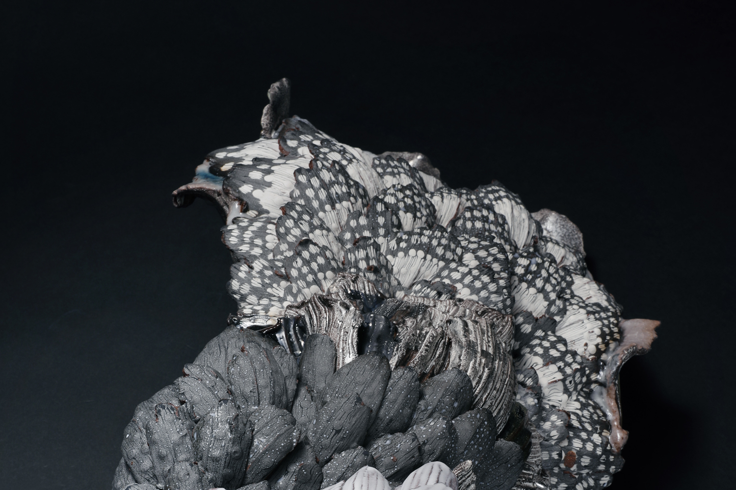 新宮さやかも七度目の個展となる。大きな荷を携え持って来てくれた写真の作品は、驚くべき丹精を尽した出来ばえで、何かの気配、兆しをはらみながら、メタモルフォーゼとか変態、生成変化というか変身のための、一瞬のストップモーションを呈示するかのようである。抽象が立っているということだろう。筆者は、彼女のなかに最も必要な継続の力を見る。継続とは一番の困難事なのだが、彼女はそれを限りある身の限り試そうとする人だと思う。彼女は、自身の心魂奥深くに眠る、美しく永遠なるものを懸命に想起しようとしているように見える。それは、作品とおのれにいまだ不足している、何か高きものを希求するといった姿勢であろう。彼女と彼女の作品との縁もすでに長きに渡るが、このご縁、向うから縁切りされない限り、この先も大切にしていきたく思っているのである。-葎-