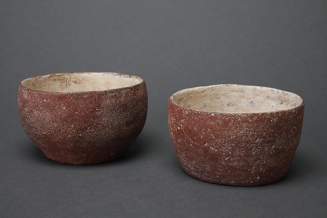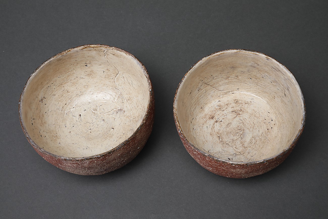 Among works marked as “SOLD,” some may be made again, or multiple versions may be in stock. Please inquire for availability. Otherwise, please forgive us if a work is already sold and unavailable. Works with wooden boxes already made for them include the price of the box in the product price. As for works without wooden boxes, we can, at the buyer’s request, have a box made for a separate fee. About ten days are necessary for a box to be made and then inscribed by the artist. For example : a paulownia wood box with a two-cleat lid with cords would be 2,500 yen for a sake cup, or 3,500yen for a tea bowl.