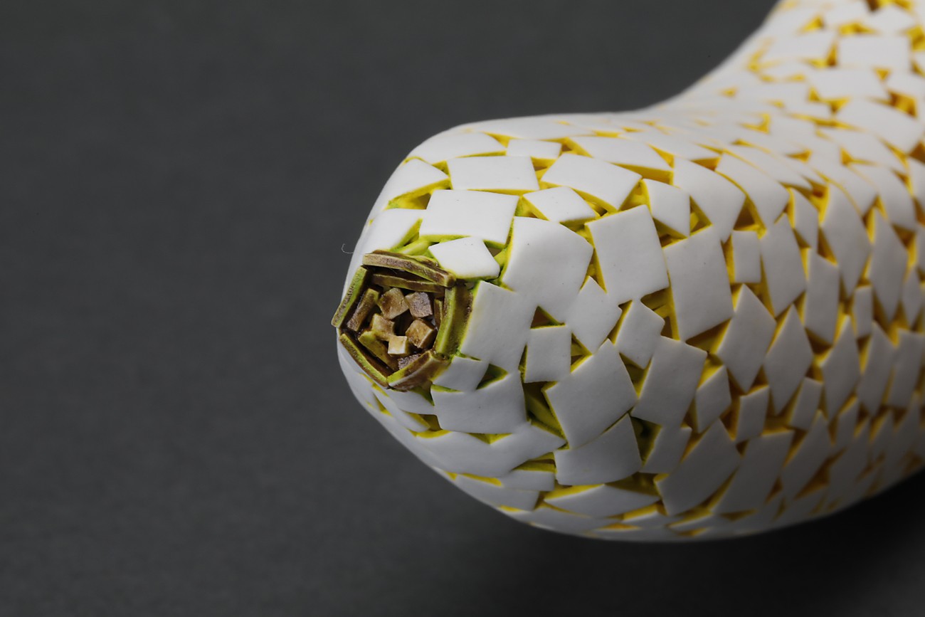磁土切片を内側に泥漿で繫ぎ合わせながら、
