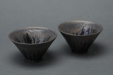 Among works marked as “SOLD,” some may be made again, or multiple versions may be in stock. Please inquire for availability. Otherwise, please forgive us if a work is already sold and unavailable. Works with wooden boxes already made for them include the price of the box in the product price. As for works without wooden boxes, we can, at the buyer’s request, have a box made for a separate fee. About ten days are necessary for a box to be made and then inscribed by the artist. For example : a paulownia wood box with a two-cleat lid with cords would be 2,500 yen for a sake cup, or 3,500yen for a tea bowl.