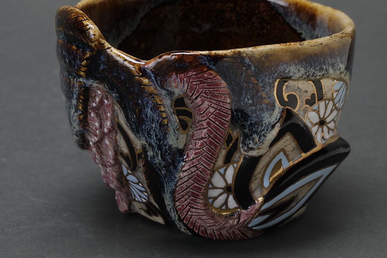 Among works marked as “SOLD,” some may be made again, or multiple versions may be in stock. Please inquire for availability. Otherwise, please forgive us if a work is already sold and unavailable. Works with wooden boxes already made for them include the price of the box in the product price. As for works without wooden boxes, we can, at the buyer’s request, have a box made for a separate fee. About ten days are necessary for a box to be made and then inscribed by the artist. For example : a paulownia wood box with a two-cleat lid with cords would be 2,500 yen for a sake cup, or 3,500yen for a tea bowl.