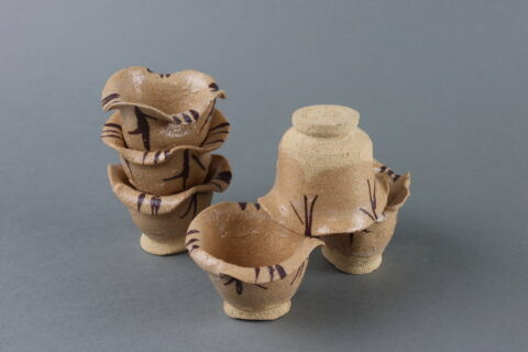 Among works marked as “SOLD,” some may be made again, or multiple versions may be in stock. Please inquire for availability. Otherwise, please forgive us if a work is already sold and unavailable. Works with wooden boxes already made for them include the price of the box in the product price. As for works without wooden boxes, we can, at the buyer’s request, have a box made for a separate fee. About ten days are necessary for a box to be made and then inscribed by the artist. For example : a paulownia wood box with a two-cleat lid with cords would be 2,500 yen for a sake cup, or 3,500yen for a tea bowl.