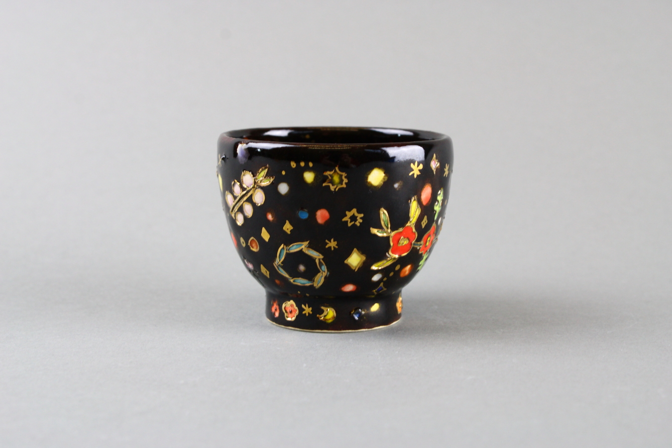 黒地金彩法花手ぐい吞