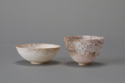 Among works marked as “SOLD,” some may be made again, or multiple versions may be in stock. Please inquire for availability. Otherwise, please forgive us if a work is already sold and unavailable. Works with wooden boxes already made for them include the price of the box in the product price. As for works without wooden boxes, we can, at the buyer’s request, have a box made for a separate fee. About ten days are necessary for a box to be made and then inscribed by the artist. For example : a paulownia wood box with a two-cleat lid with cords would be 2,500 yen for a sake cup, or 3,500yen for a tea bowl.