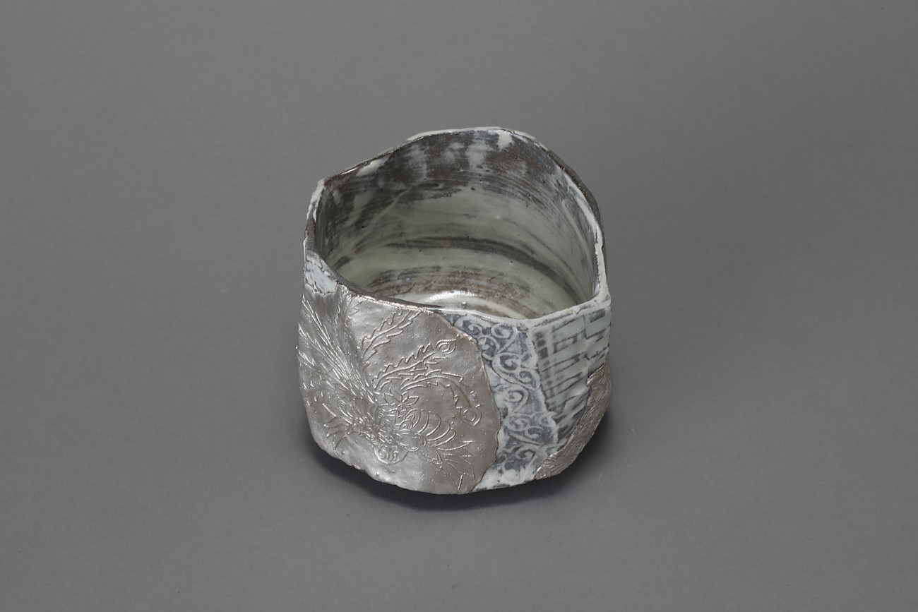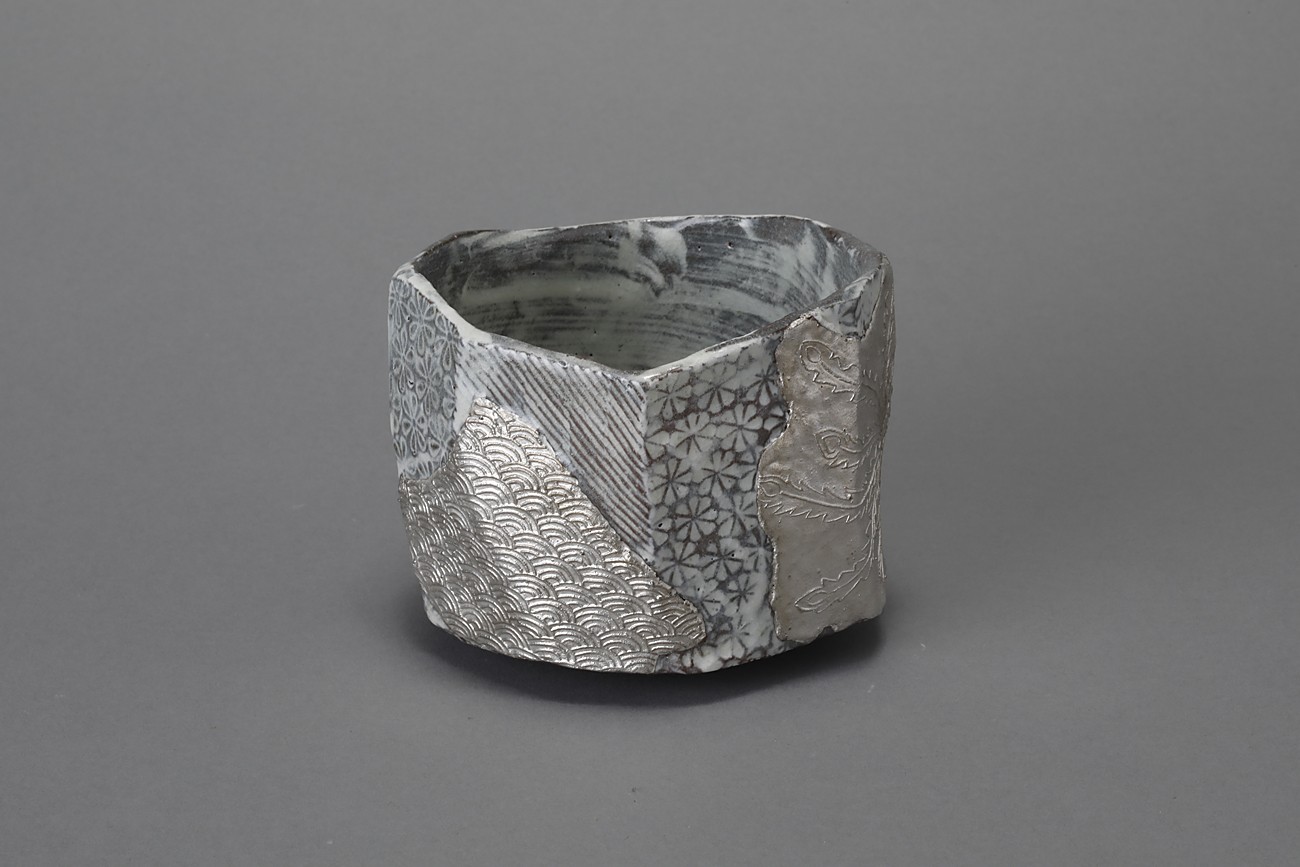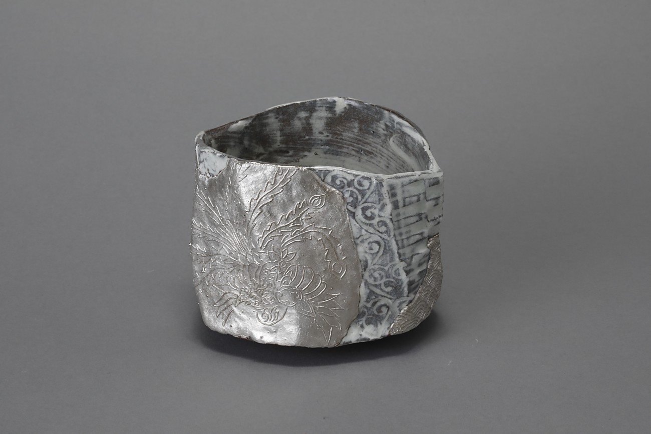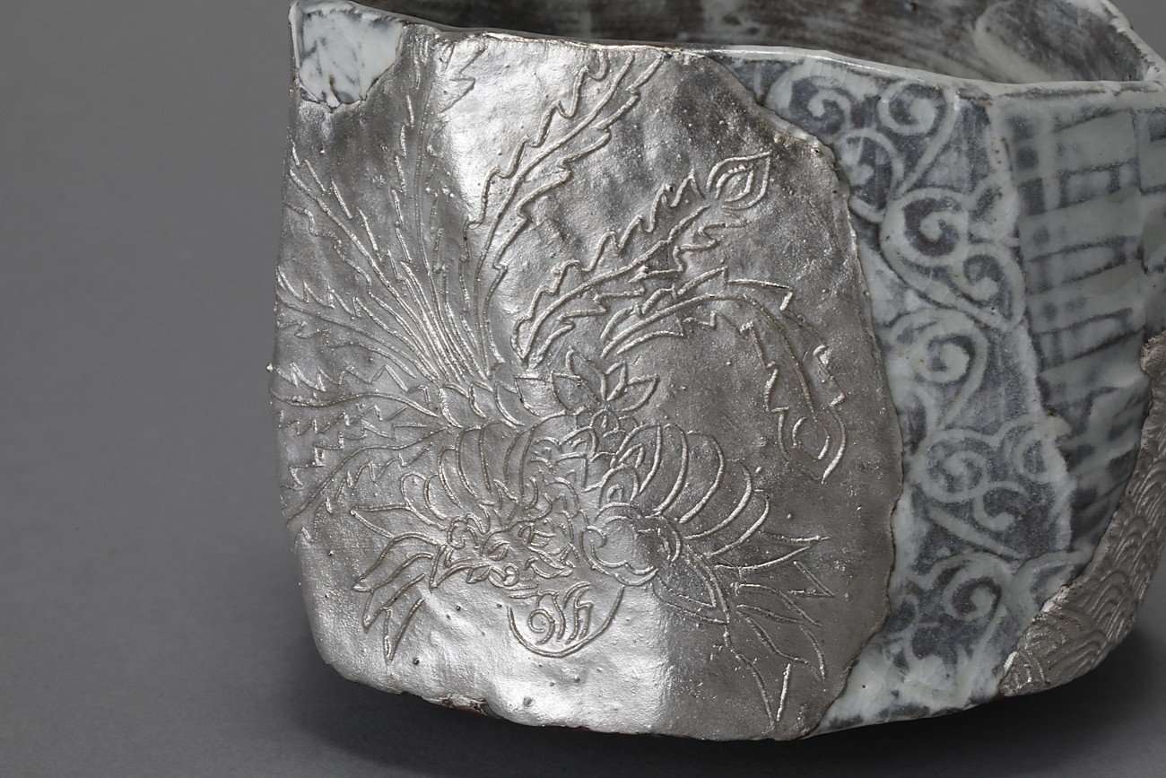 三島貼花銀彩茶盌