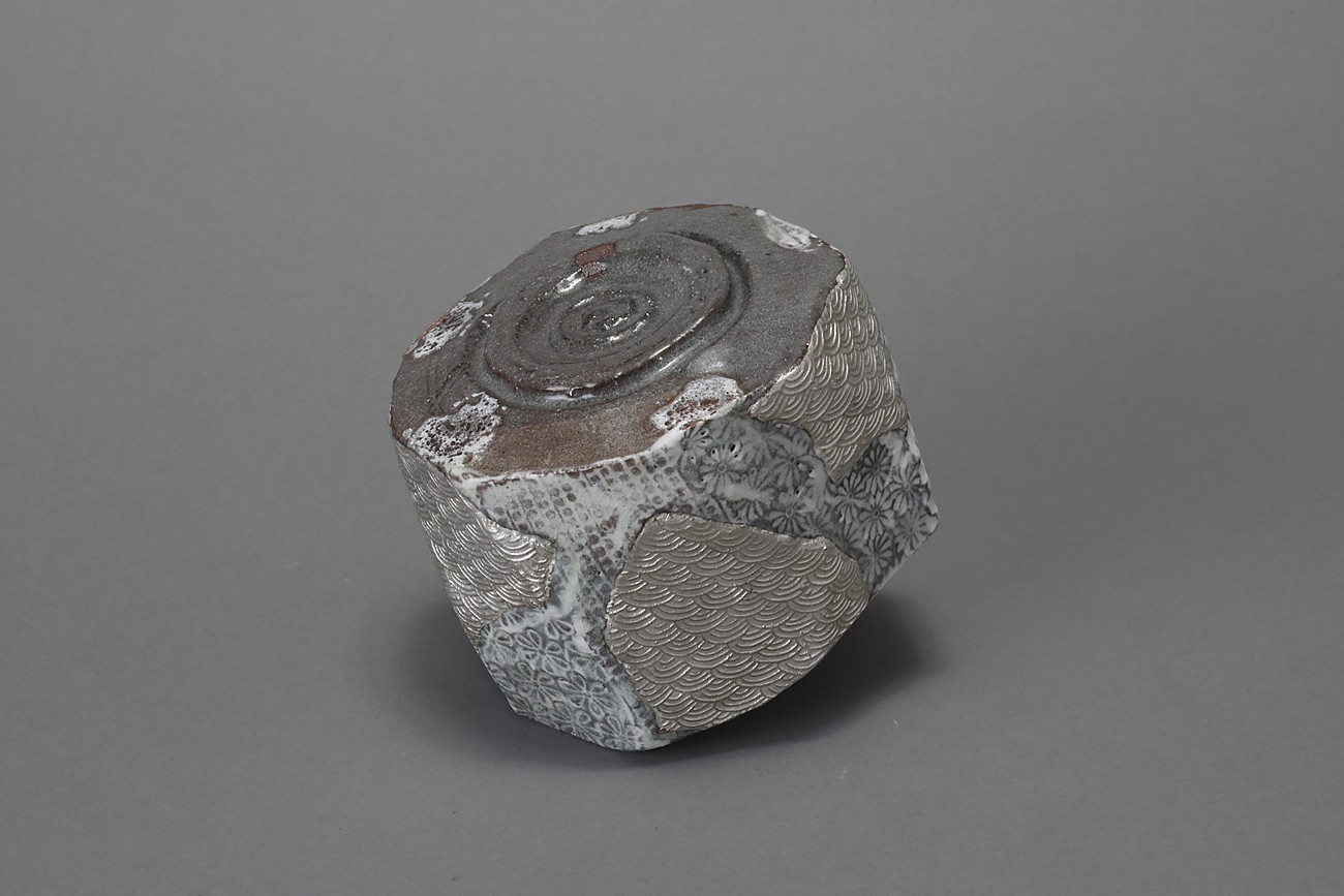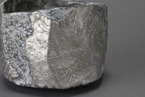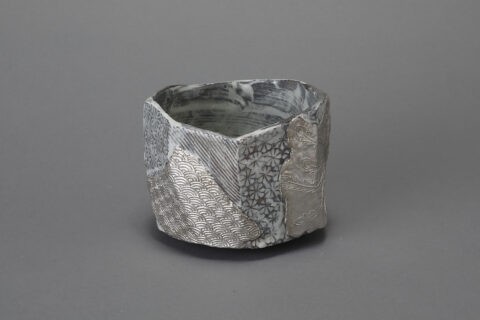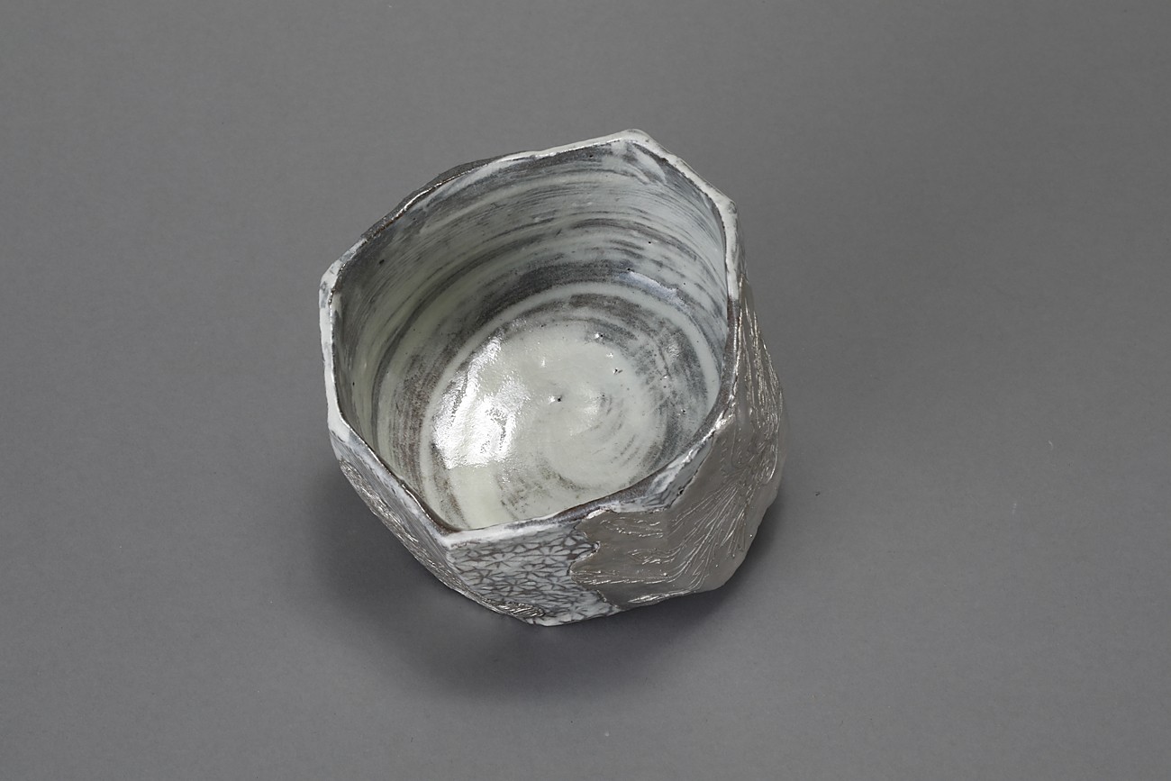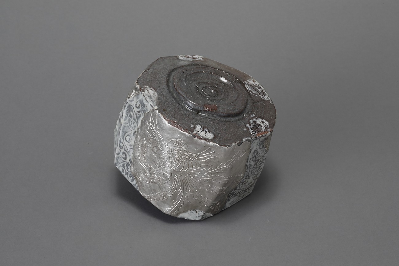 三島貼花銀彩茶盌