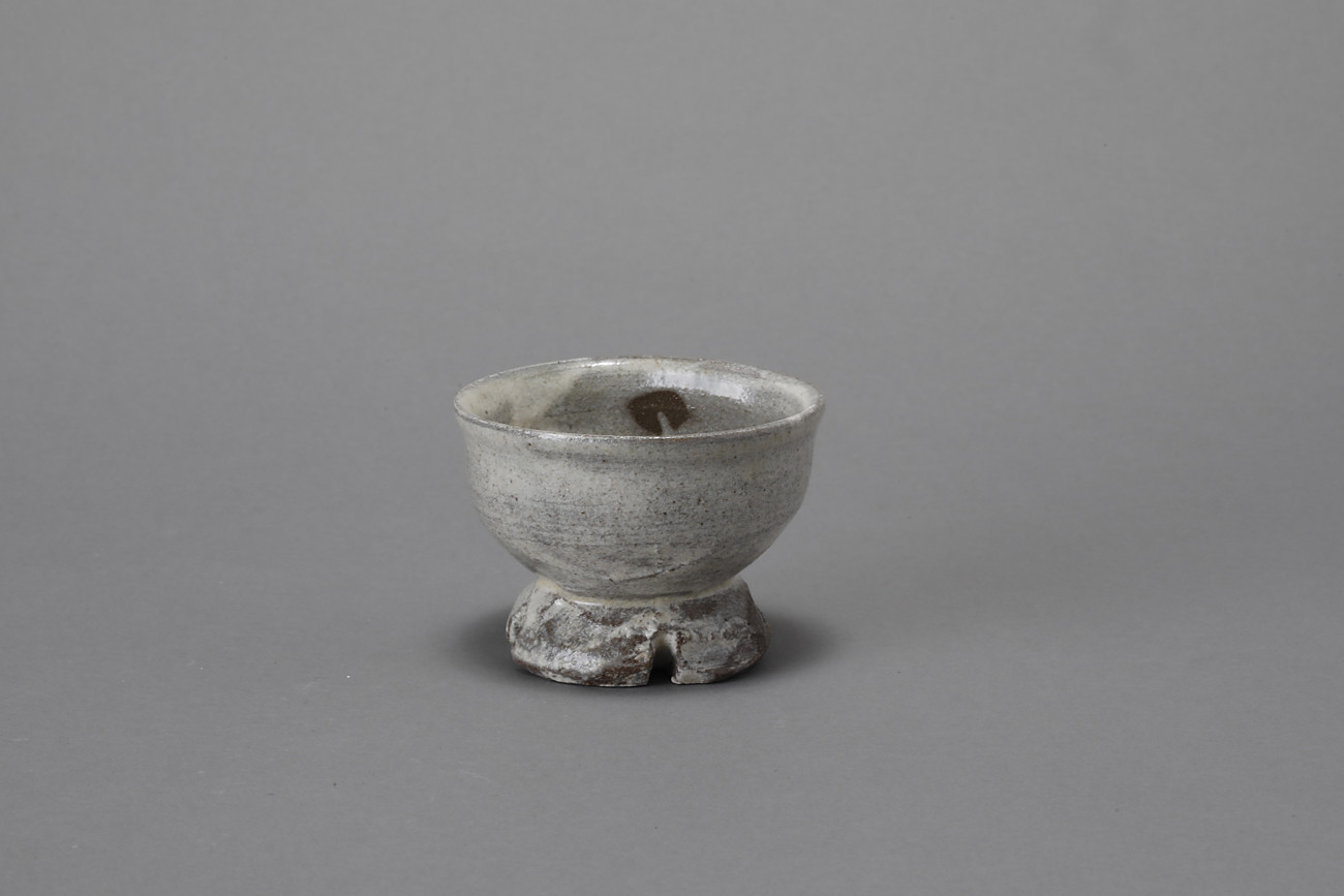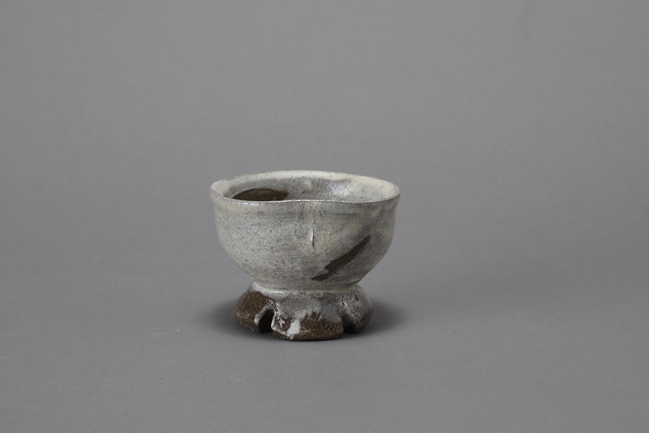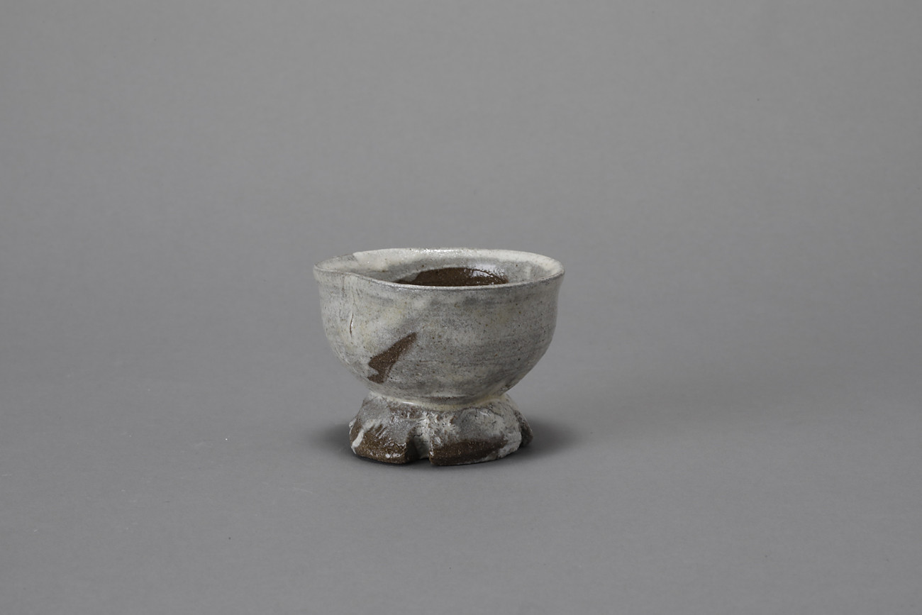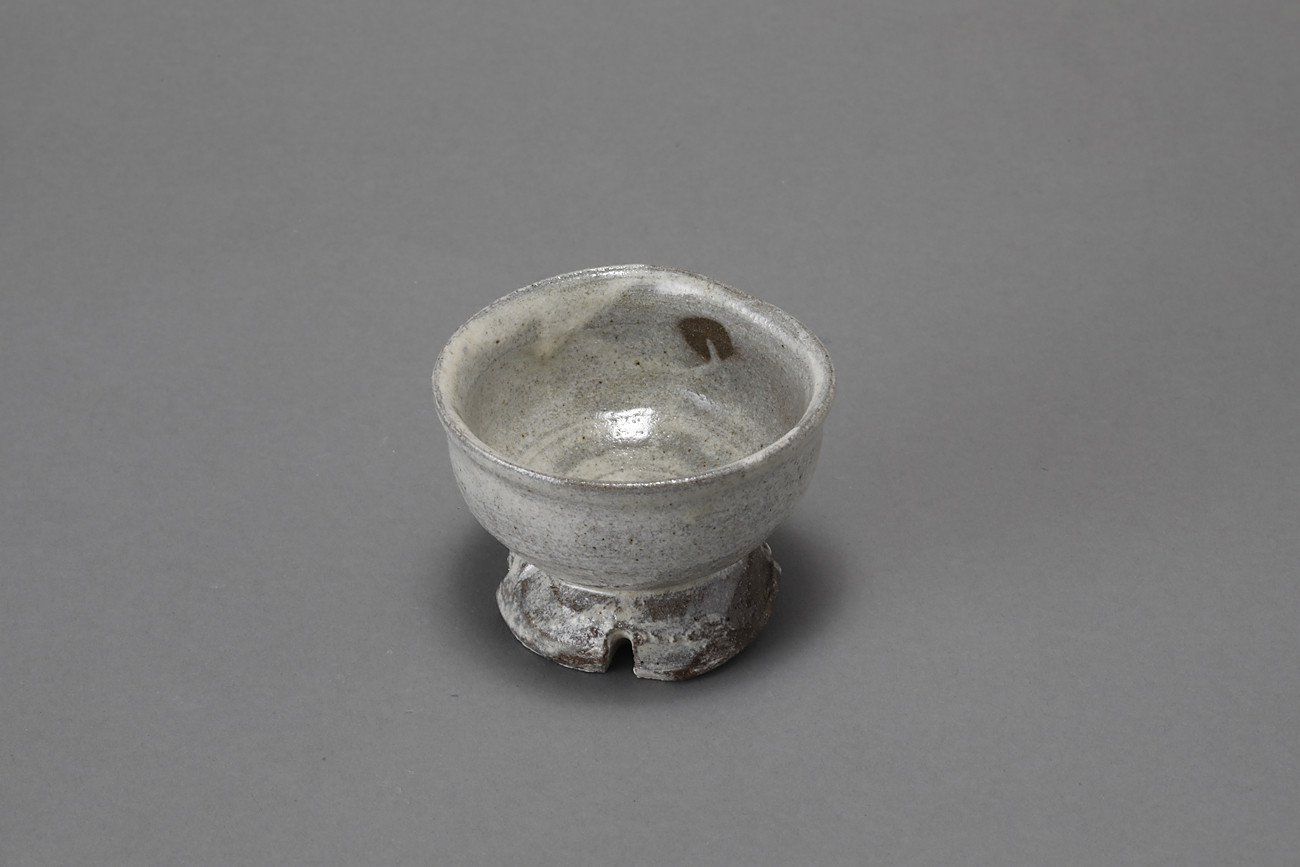粉引割高台盃