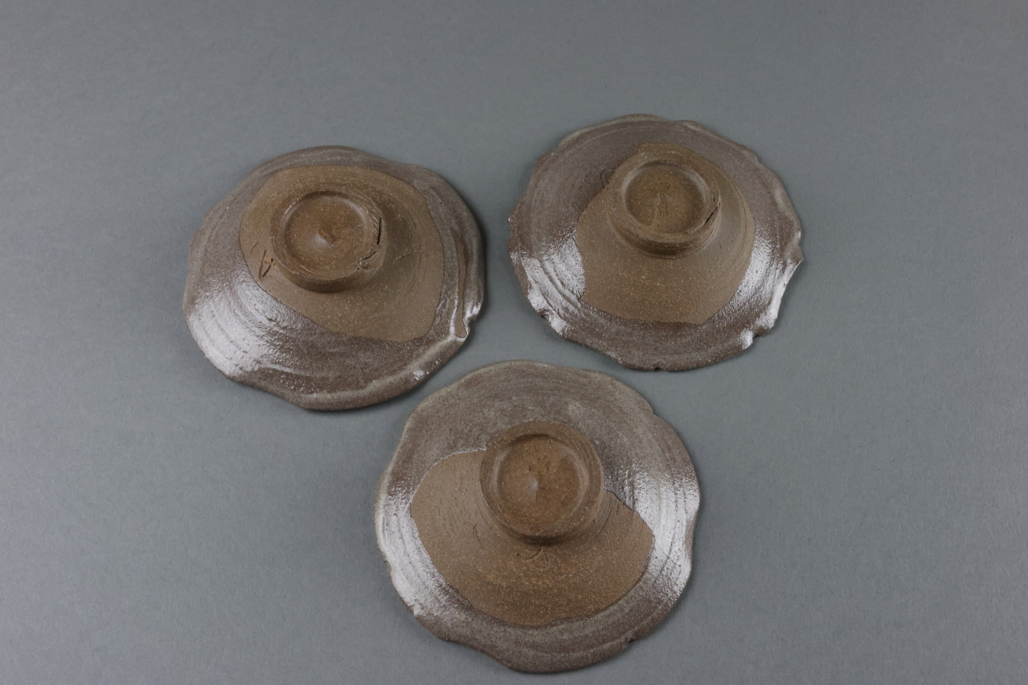 Among works marked as “SOLD,” some may be made again, or multiple versions may be in stock. Please inquire for availability. Otherwise, please forgive us if a work is already sold and unavailable. Works with wooden boxes already made for them include the price of the box in the product price. As for works without wooden boxes, we can, at the buyer’s request, have a box made for a separate fee. About ten days are necessary for a box to be made and then inscribed by the artist. For example : a paulownia wood box with a two-cleat lid with cords would be 2,500 yen for a sake cup, or 3,500yen for a tea bowl.