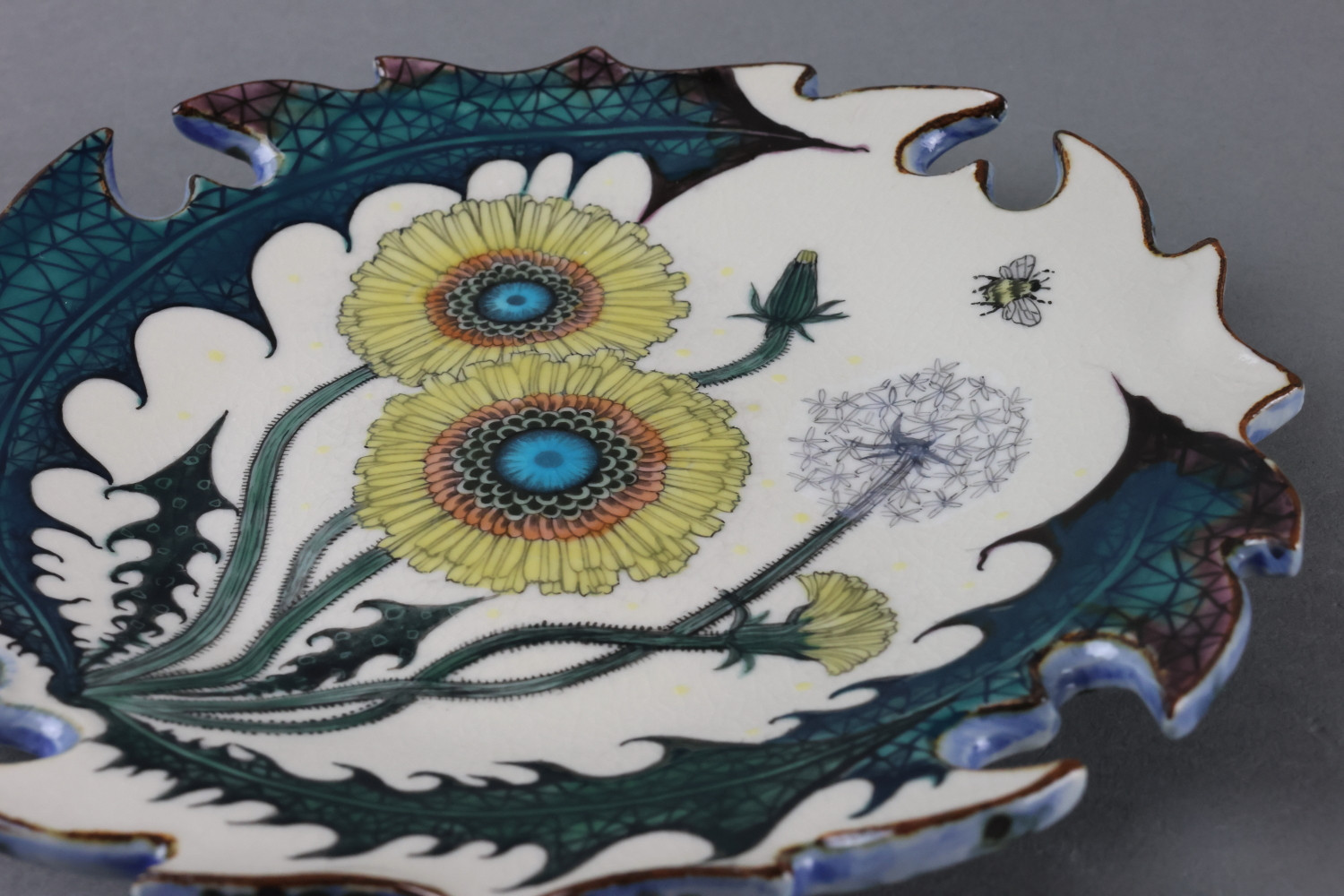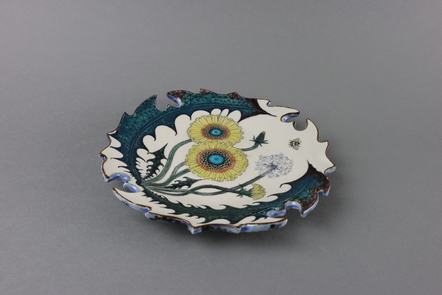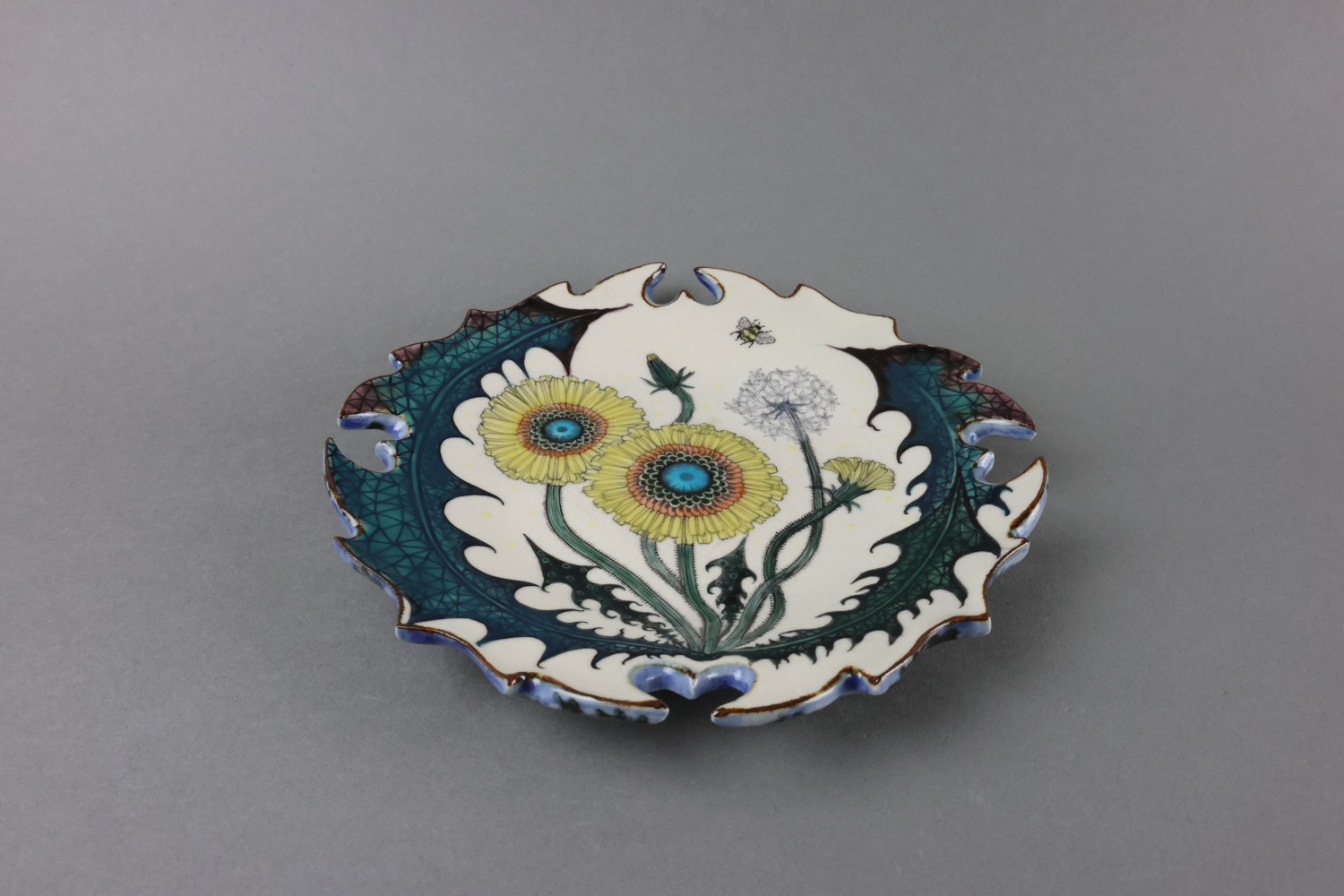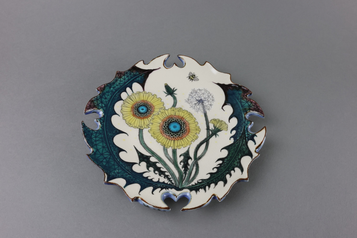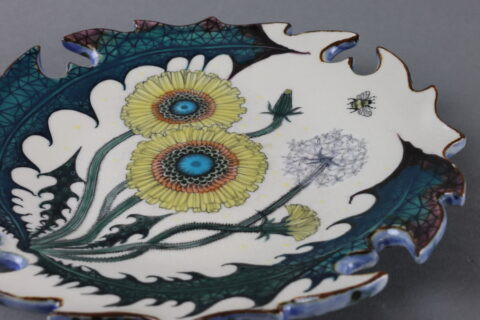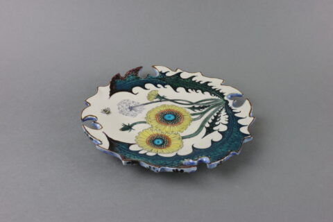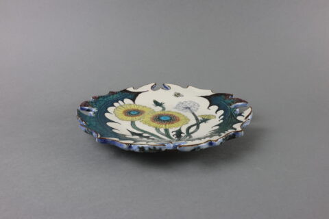 色絵輪花皿(壁面可) “Dandelion”