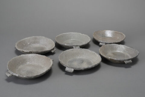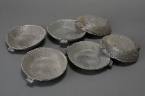 Among works marked as “SOLD,” some may be made again, or multiple versions may be in stock. Please inquire for availability. Otherwise, please forgive us if a work is already sold and unavailable. Works with wooden boxes already made for them include the price of the box in the product price. As for works without wooden boxes, we can, at the buyer’s request, have a box made for a separate fee. About ten days are necessary for a box to be made and then inscribed by the artist. For example : a paulownia wood box with a two-cleat lid with cords would be 2,500 yen for a sake cup, or 3,500yen for a tea bowl.