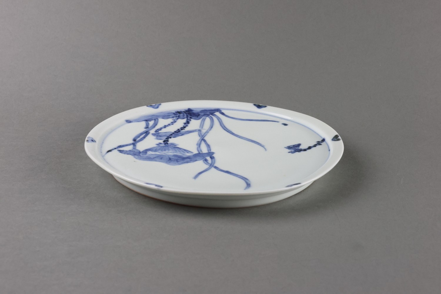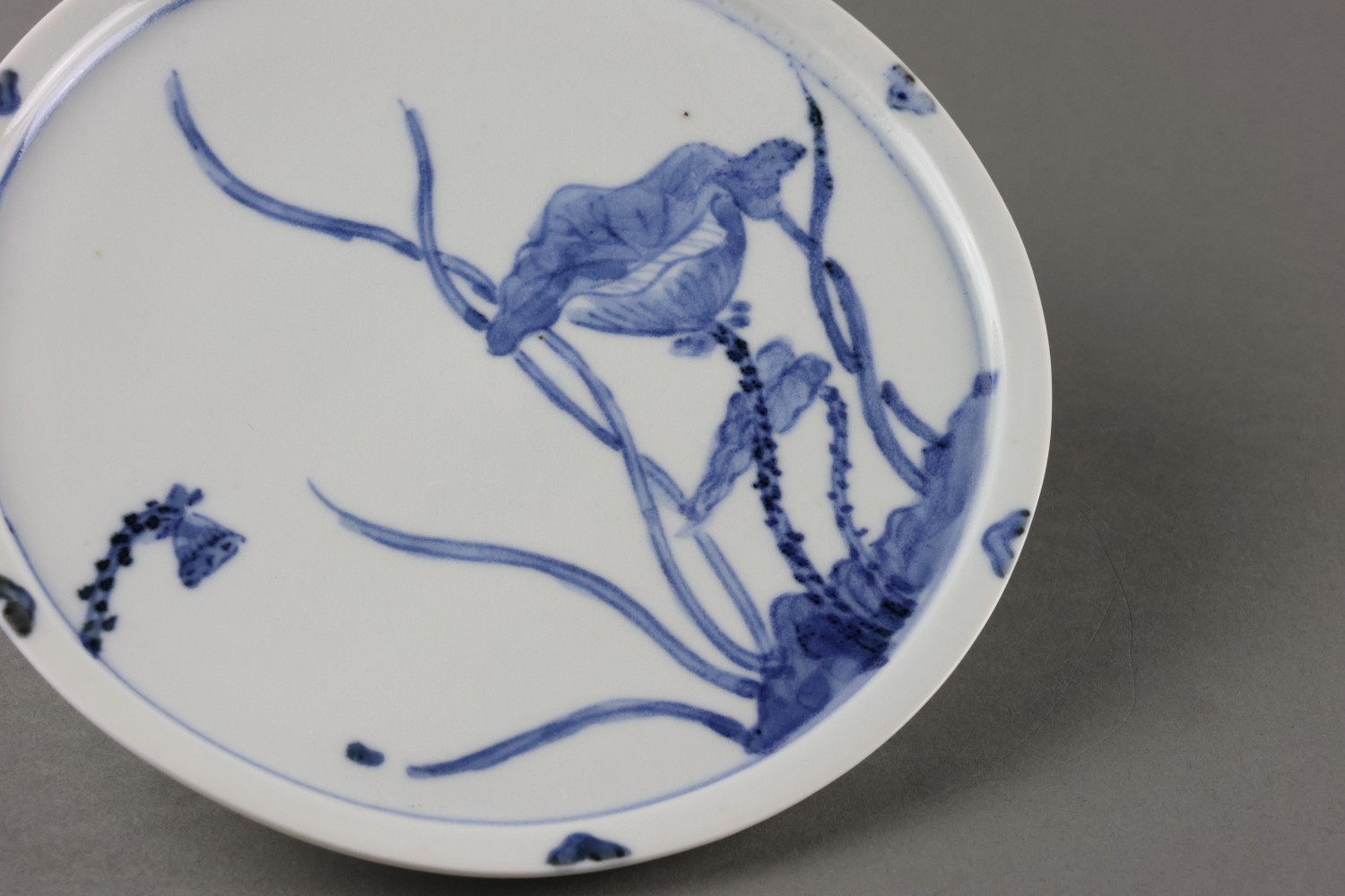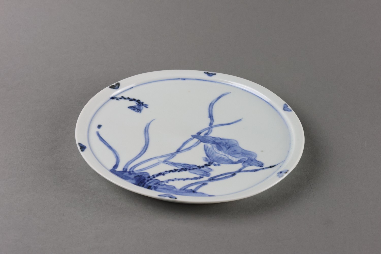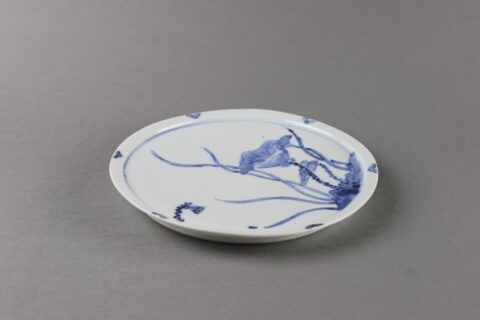 染付蓮図六寸皿
